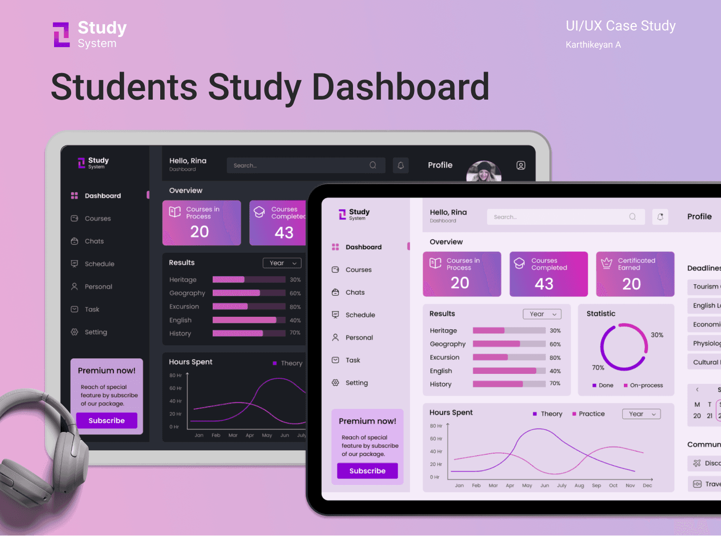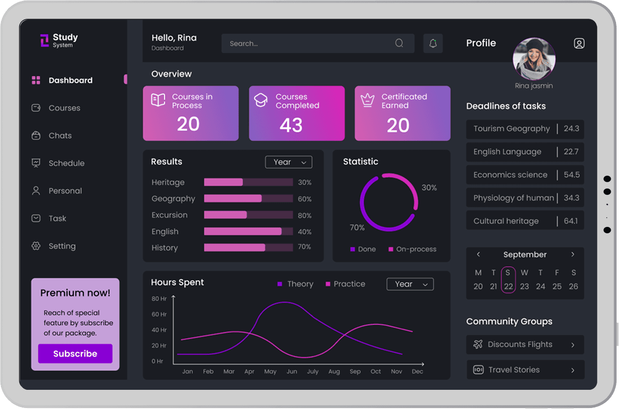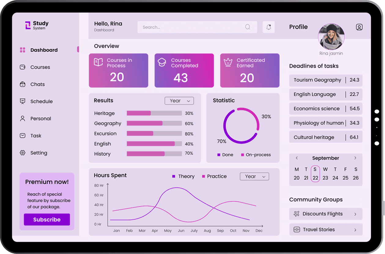 A study system is student study activity tracking dashboard, which students keep track of their study activities, reading habits, and completed courses.